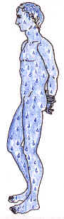 Als ich versuchte, diese Spannung durch Wärmekreisen (durch den ganzen Körper) zu glätten, glitt die Kraft in den Trieb ab. So konzentrierte ich mich auf die psychische Komponente der Kraft, wie sie mein Bewußtsein in mich hinein und gleichzeitig in die Weite zog. Da verstärkte sich die Spannung zwischen den Fußsohlen und dem Anahata. In starker Entladung gingen Blitze in 'Zick-Zack'-Form den Körper hinauf. Diese Entladungen konnte ich durch die Visualisation einer großen orange-gelben Sonne unter Kontrolle bringen. Das Hämmern und die Vibrationen am ganzen Körper wurden immer schneller und subtiler, bis sie nur noch als Rieseln den Rücken hinauf, bzw. innerhalb des Körpers spürbar waren. Das Erleben der enormen Kraft, die dahinter steht, war weiterhin dominant. Auch das Rieseln empfand ich nur als Ausdruck der Entladung und Spannung zwischen den energetischen Polen (Füße - Brust). (Ku)