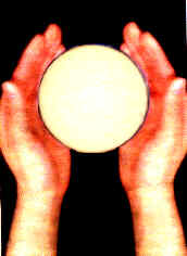 Fortsetzung der vorhergehenden Übung ("Pressen einer Eisenstange"). Du hältst zwischen Deinen Handflächen eine glühende Lichtkugel aus Energie. Fühle sie. |
