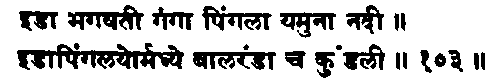 Ida wird die Göttin Ganges genannt, Pingala als Göttin Yamuna.