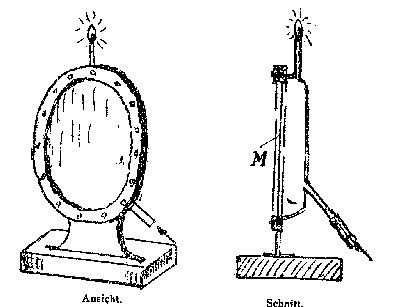 "Sie besteht aus einem auf einem feststehenden Rahmen gespanntem Collidiumhäutchen, hinter welchem eine Gaskammer sich befindet." Diese hat einen Zufluß mittels eines Gummischlauches. Das Gas wird oben abgefakelt Wird das Collodiumhäutchen in Schwingung gebracht, so flackert die Flamme.
