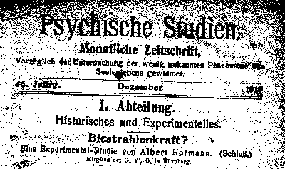 Drei Artikel von Albert Hofmann, "Biostrahlkraft?" in Psychische