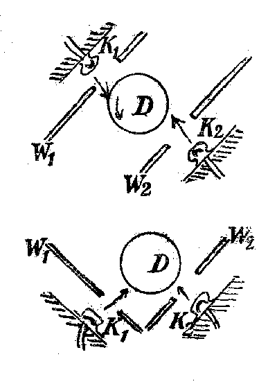 "Zwischen der den Drehzylinder umspannenden Hand und dem ersteren entsteht ein "Kraftfeld" im Sinne Maxwells. Die erste Erhebung der Haut sucht den Drehzylinder an der ihr gegenüberliegenden Stelle wegzuschieben, die darauf folgende Einbuchtung sucht ihn anzuziehen und sofort wirkt jede sich fortschlängelnde Blutwelle in gleicher Weise."
