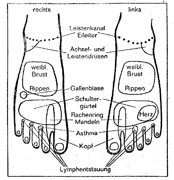 Hat man einige Zeit die Vokale in den Fußmitten geübt, wird man dort eine langsam zunehmende Erwärmung verspüren. .. Auf diese Weise bearbeite man die ganze Fußsohle.... "