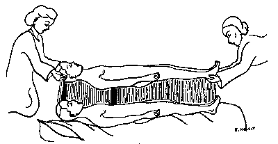 The etheric body lifts from the physical body, keeping the same body-position. Like a balloon, held by a cord, the etheric body is suspended in mid-air and swaying there.