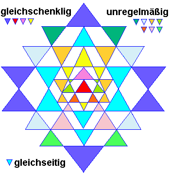Das Shri-Yantra besteht aus 43 Dreiecken : 12 Arten = 21 verschiedene